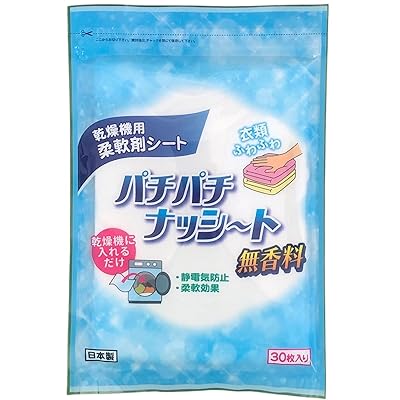 - 乾燥機用柔軟剤シートを1枚入れるだけで、静電気を抑え、ふんわり仕上がります。